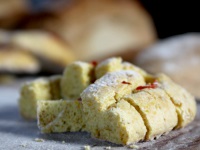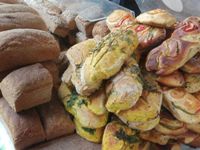 …und mit ihr gibt es auch wieder unsere leckeren Frühlingsfladen mit frischen und getrockneten Kräutern, gekochten Kartoffeln und Dinkelmehl.