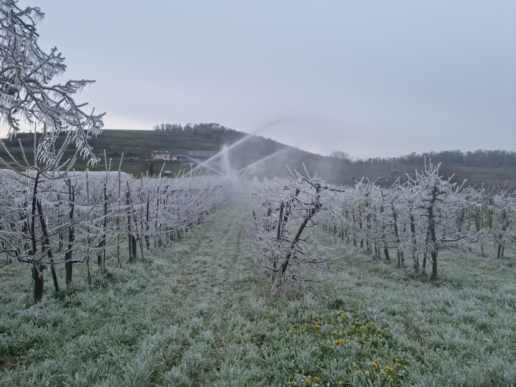 Für so eine Frostnacht braucht es allerdings viel Wasser und kräftige Pumpen. Aber ohne diesen Schutz wären manche Jahre sonst komplett verloren.