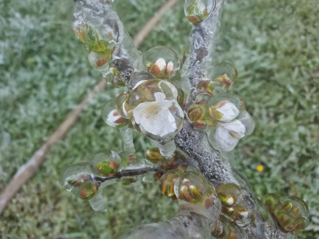 Fast jedes Jahr erwischt uns zur Obstblüte noch einmal Frost. Die jungen Knospen und Blüten sind da sehr empfindlich – schon ein bisschen unter null Grad kann reichen, damit ein Teil der Ernte kaputtgeht. In schlimmen Jahren kann sogar alles erfrieren.